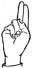 На ћирилици написано КОСТА ЈОВАНЧЕВИЋ састоји се из 15 слова [?]. Исписано ћириличном једноручном азбуком за глувонеме: